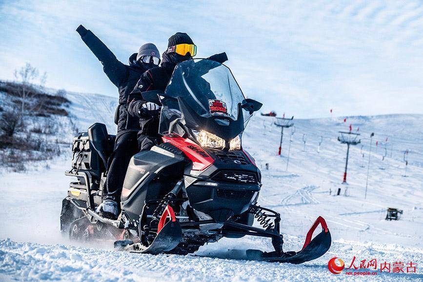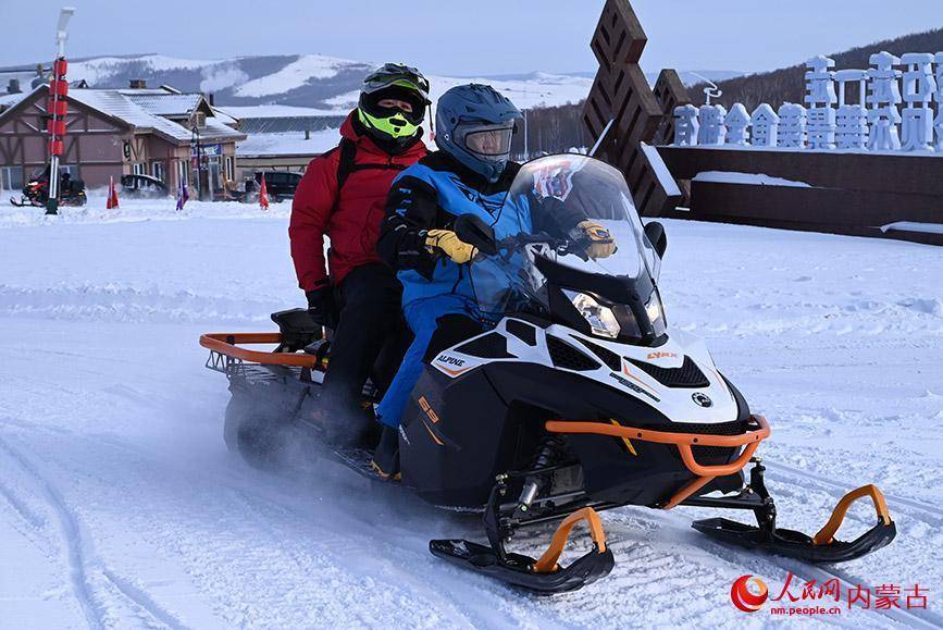 旅客在牙克石凤凰山景区驾驶雪地摩托。实习生 刘迎雪摄